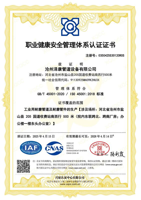 职业健康管理体系认证证书